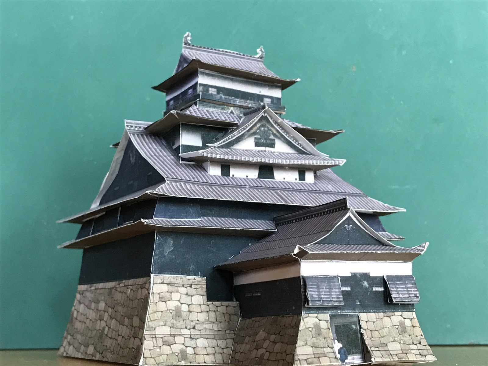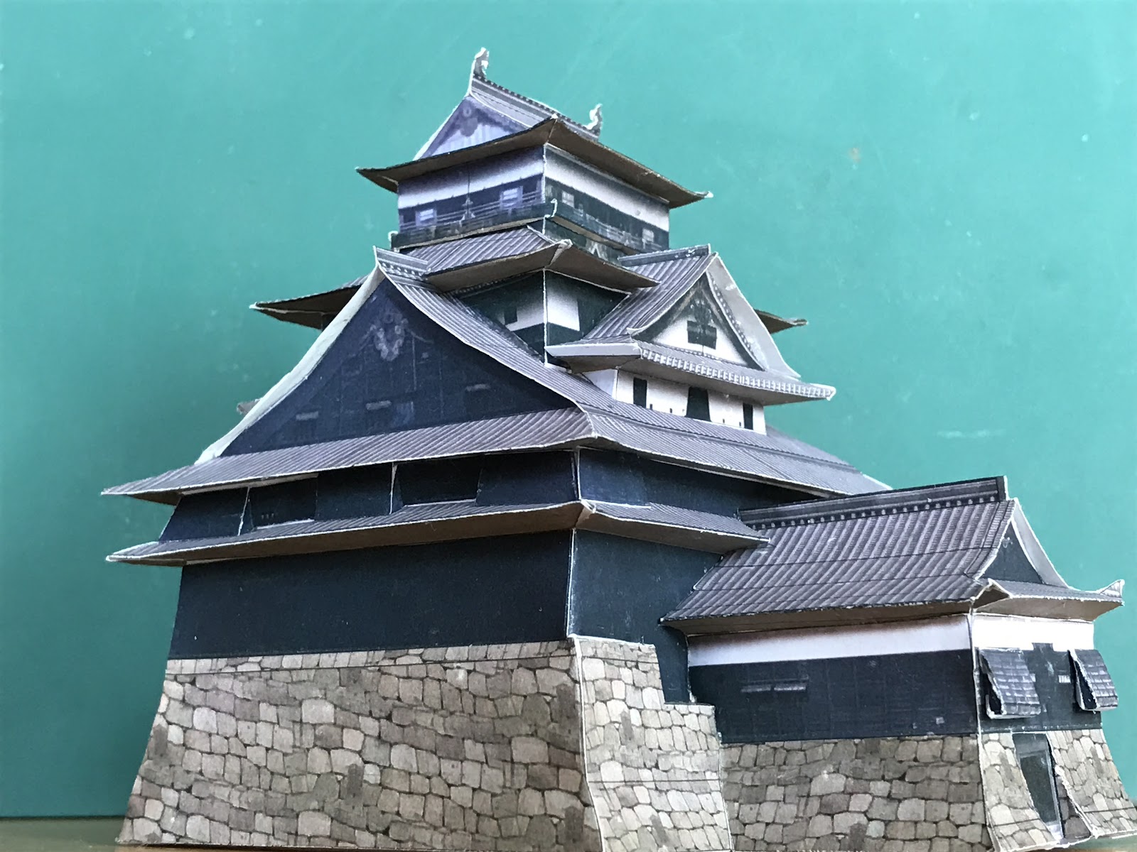 当初、Sketchupを使い始める前に、Inkspaceで天守と石垣を素から描いて、組み立ててみたのがこちらです。Sketchupの天守を載せてみましたが、形の違いが判ると思います。3Dモデルを作り直したいとおもっています。