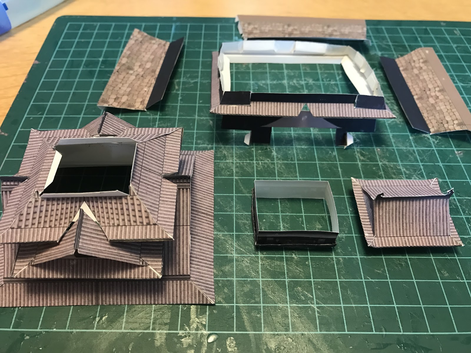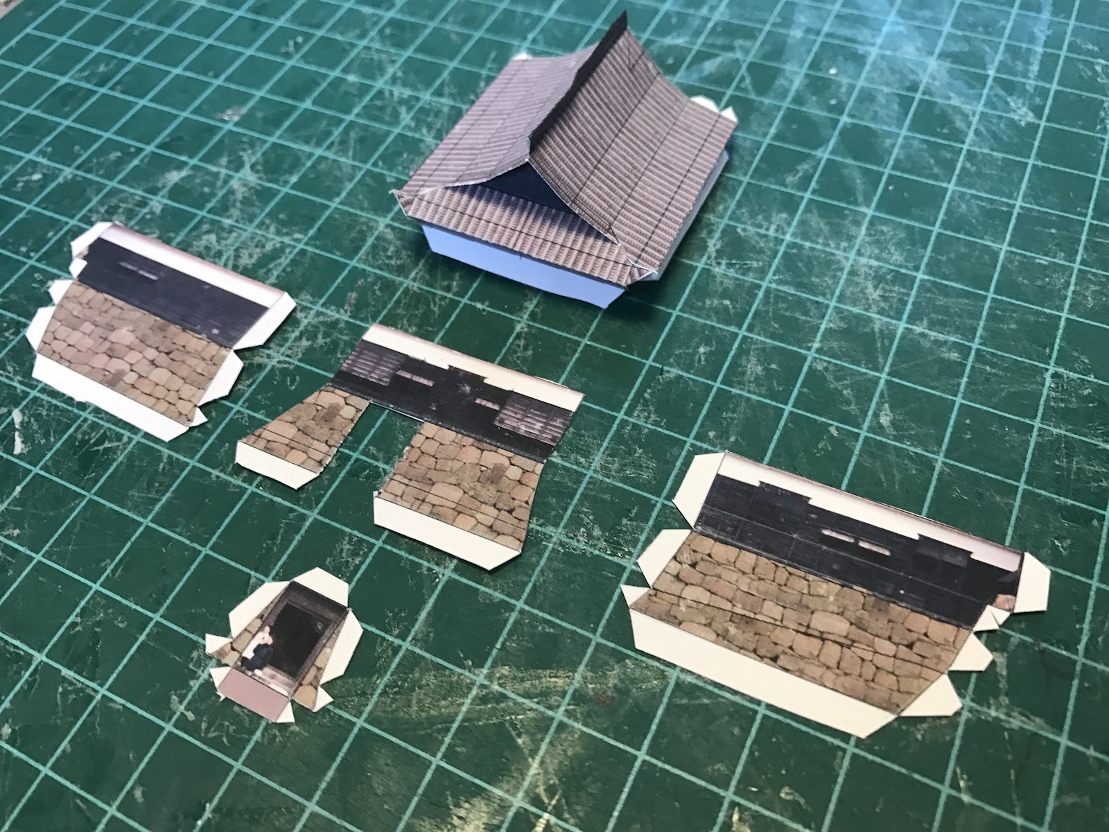 本壇には多数の櫓があり、見ごたえ十分で一押しなのですが、ペーパークラフトの型紙がほとんどなかったので、 それならばと作成を開始しました。図面もかなりあることが分かっており、順に集めながら、制作方法を模索しつつ、年末から3か年計画で進行中。まずは試作0版です。