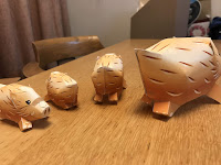3つのサイズで4体。以前でしたら、父、母、息子二人ですが、ちび二人はいつの間にか大きくなり、一人には抜かれました。